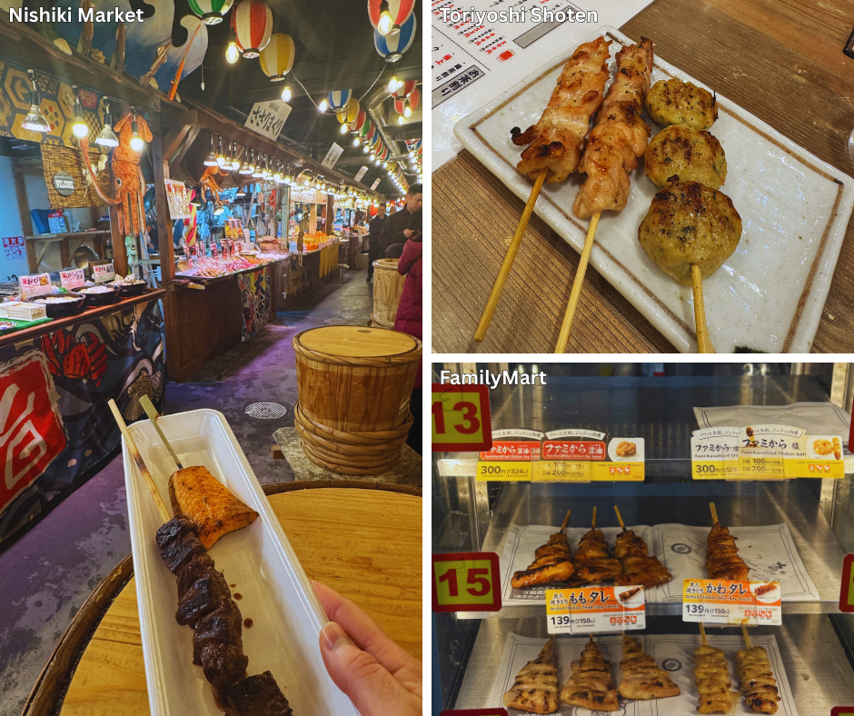 Next up: protein. No challenge here, Japan has you covered. Markets like Ameyoko in Tokyo, Kuromon in Osaka and Nishiki in Kyoto are hotspots for street food, where you can find just about any kind of protein on a stick. If you’re in the mood for a sit-down experience, find a nearby yakitori joint and try an assortment of skewers. And don’t rule out convenience stores like FamilyMart, 7-Eleven or Lawson, found on nearly every block with hot skewers, oden and plenty of grab-and-go options from the fridge section.