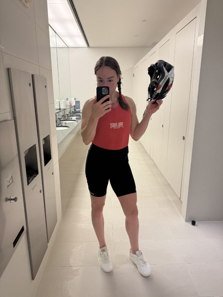 Specialized UWS women’s group ride led by Erin McCombe. This was my second group ride. I showed up in sneakers, a cut-up tank, spandex shorts (no padding yet) and a borrowed helmet. Peace!