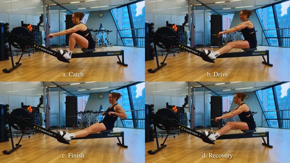 2. The rowing stroke can be broken into four parts: the catch, the drive, the finish and the recovery.